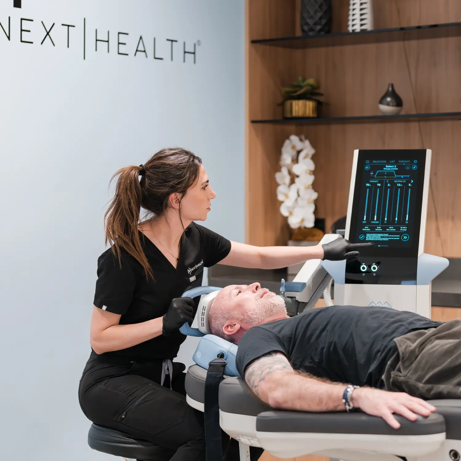 Before beginning EXOMIND® therapy, a brief medical screening is required to ensure safe and appropriate treatment. This includes Medical Provider Clearance: A consultation with a licensed Next Health Medical Provider to review medical history, assess eligibility, and determine the appropriate treatment approach.